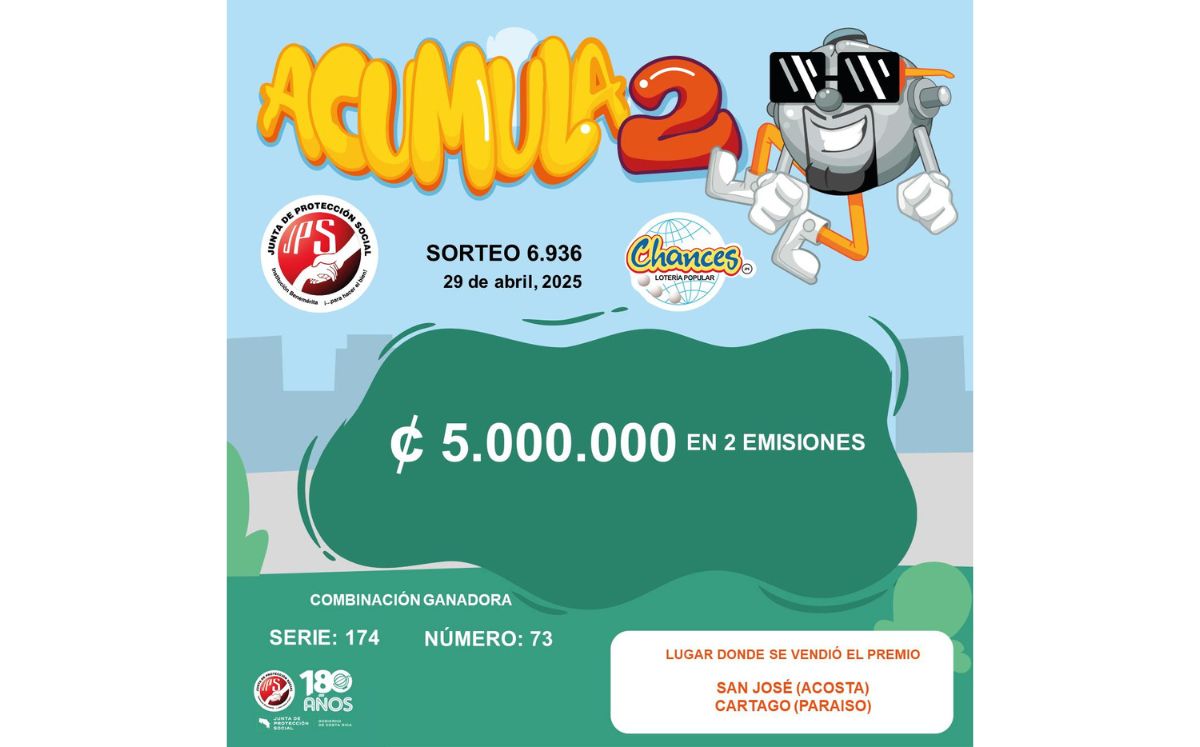 El Premio Acumulado de la JPS está en 680 millones de colones en dos emisiones.